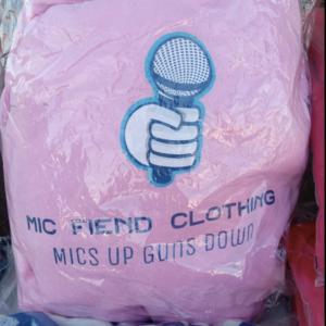 Amada Moda Apparel Light Pink Mics Up Guns Down Varsity Jacket