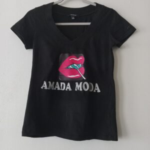 Be the first to review “Amada Moda Apparel Sexy Lips Ladies Tee Black”