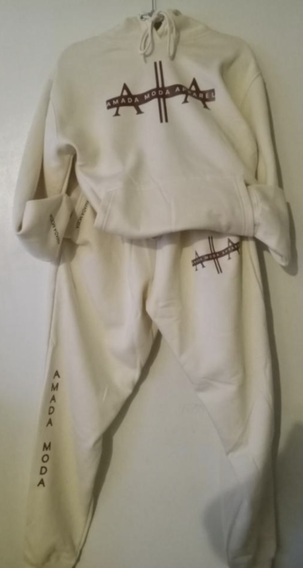 Be the first to review “Cream AMA Logo SweatSuit With Leg Print”